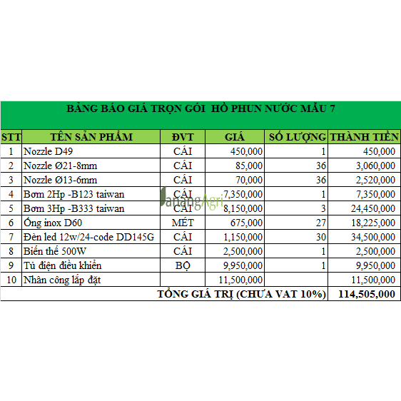 Còn tuy vào kích thước hồ phun và kiểu phun mà giá có thể thay đổi
